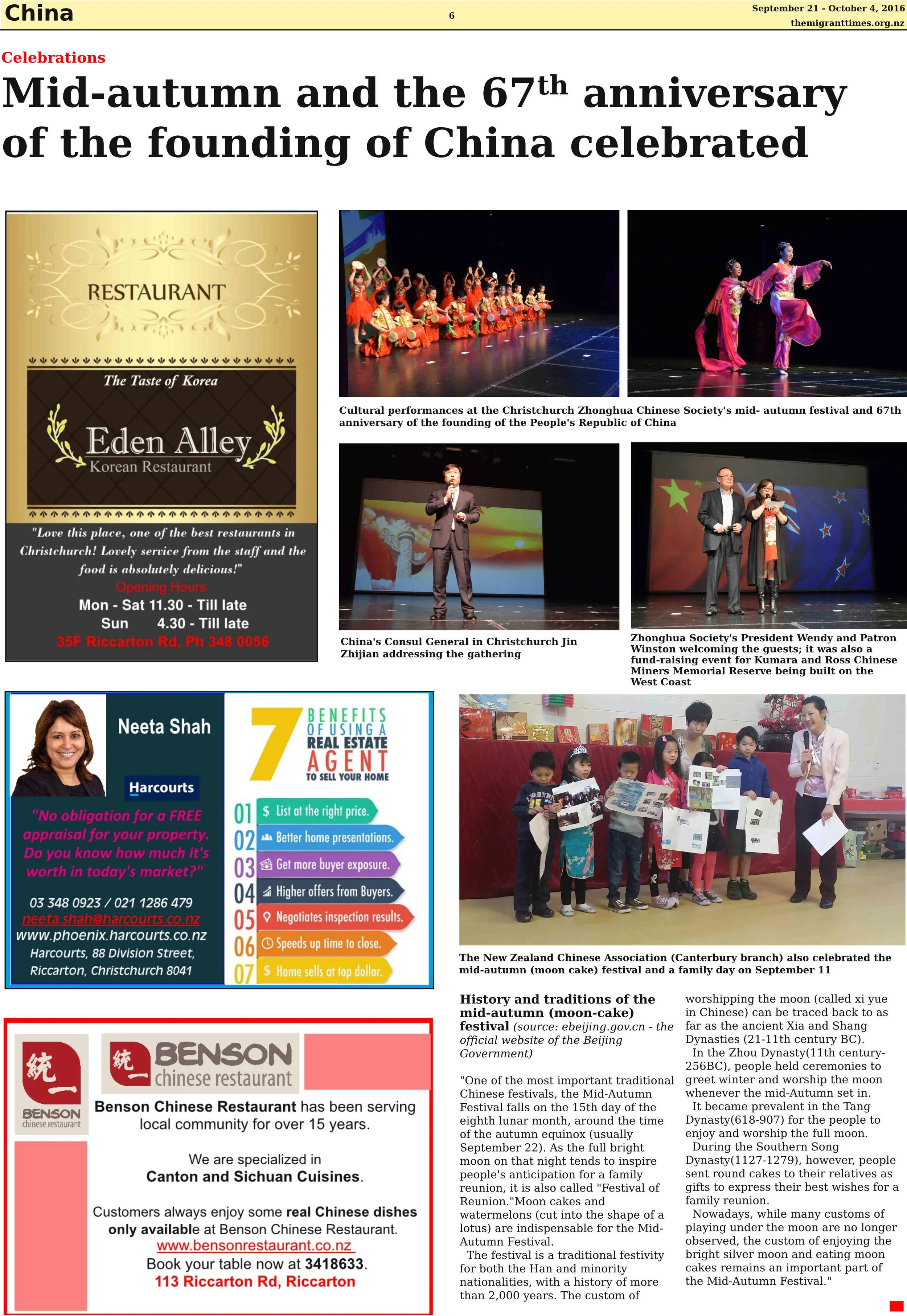 The New Zealand Chinese Association (Canterbury branch) also celebrated the mid-autumn (moon cake) festival and a family day on September 11