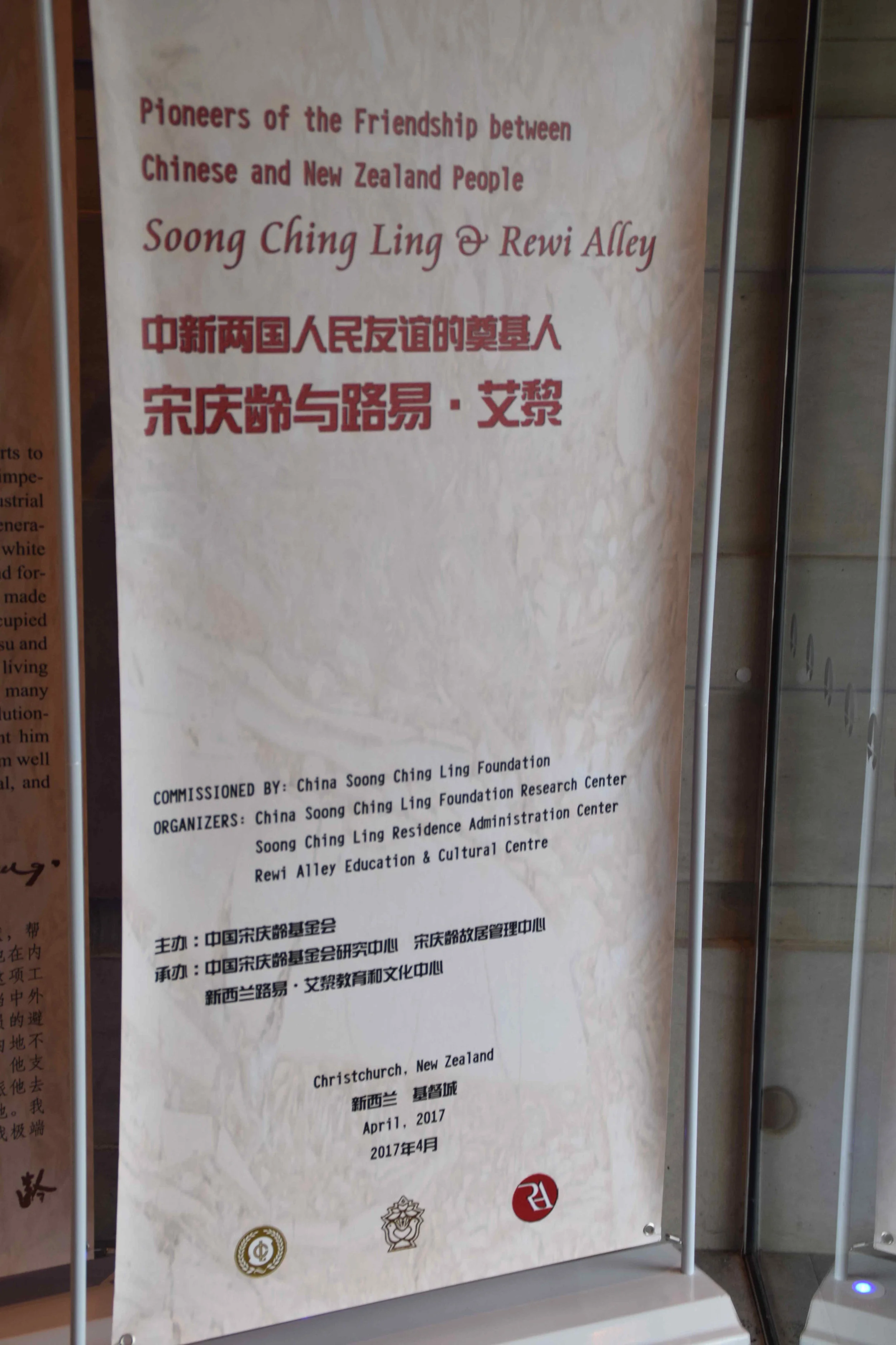 The banner exhibition was displayed at the Christchurch City Council building depicting their life stories. It was commissioned by the China Soong Ching Ling Foundation, and organised by the Foundation's Reserach Centre, and Rewi Alley Education and Cultural Centre.